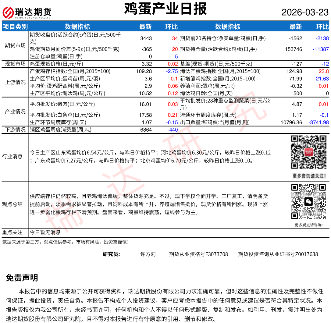 2026-03-23瑞达期货鸡蛋产业日报20260323