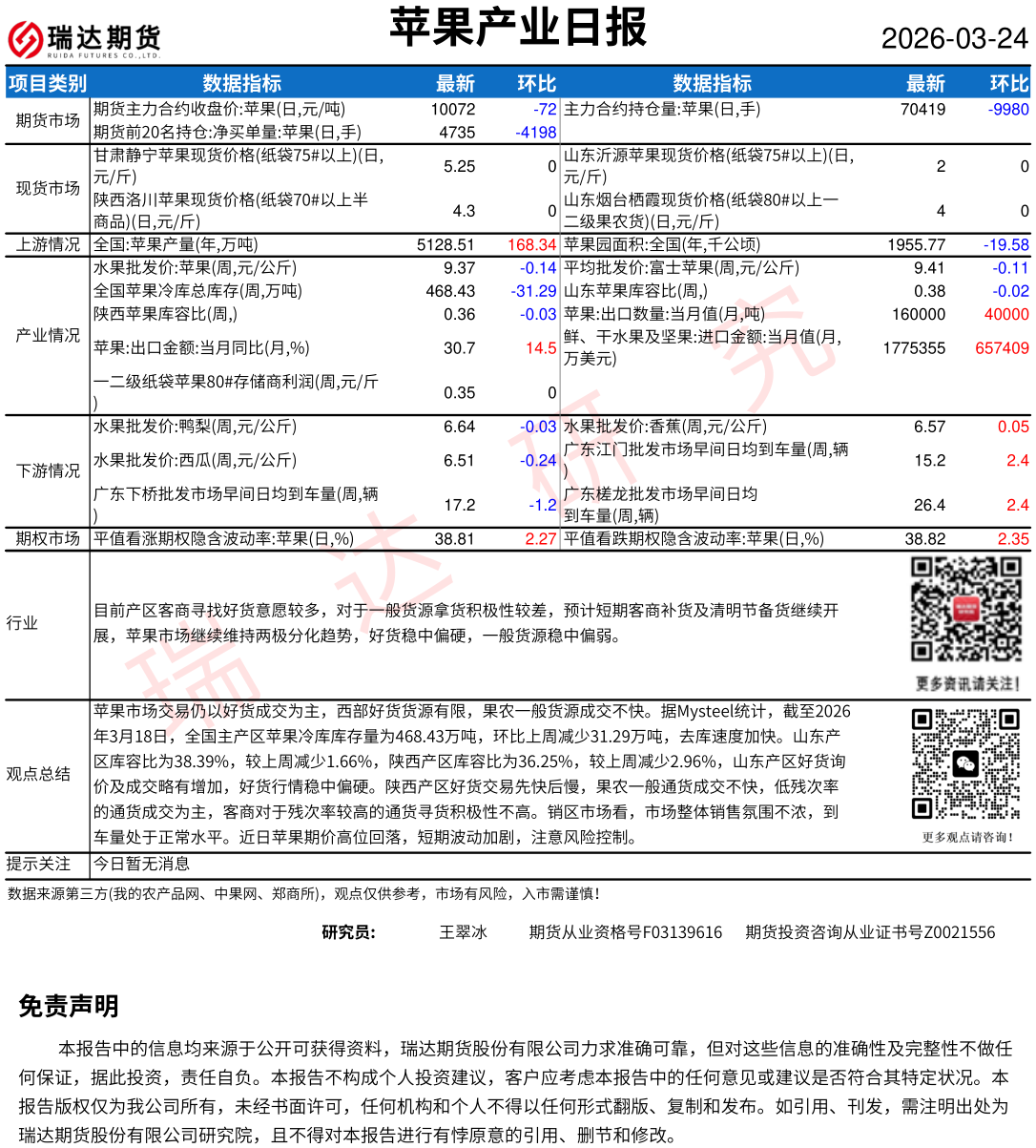 2026-03-24瑞达期货苹果产业日报20260324