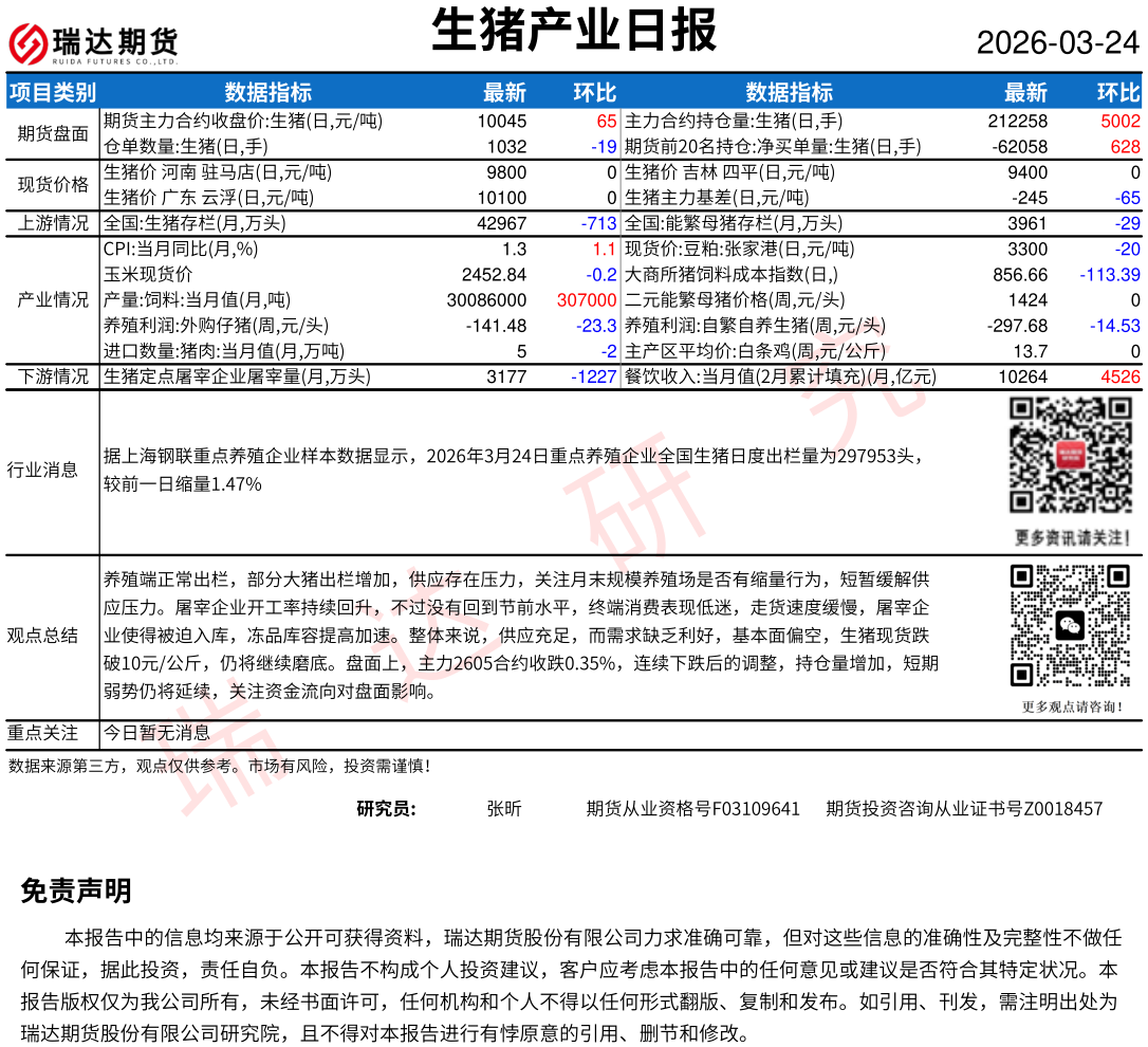 2026-03-24瑞达期货生猪产业日报20260324