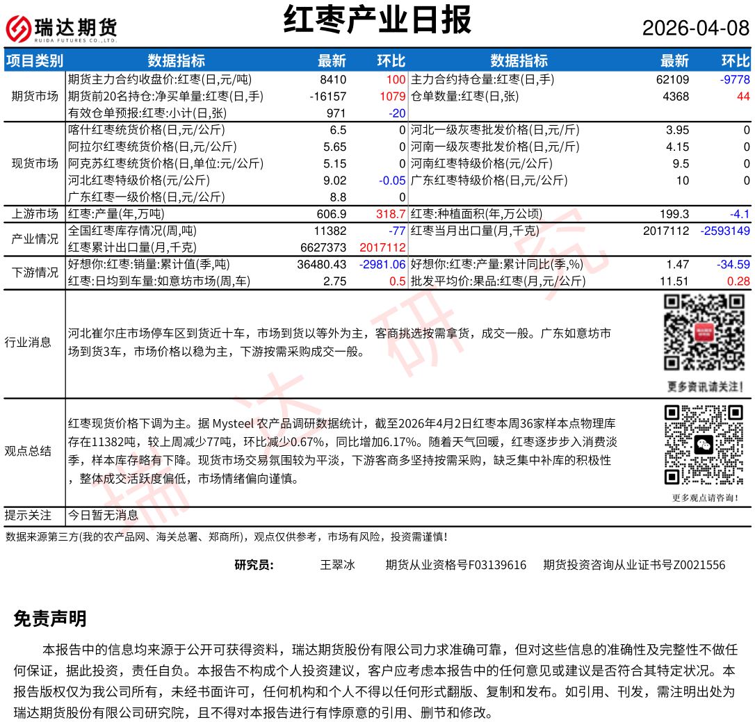 2026-04-08瑞达期货鸡蛋产业日报20260408