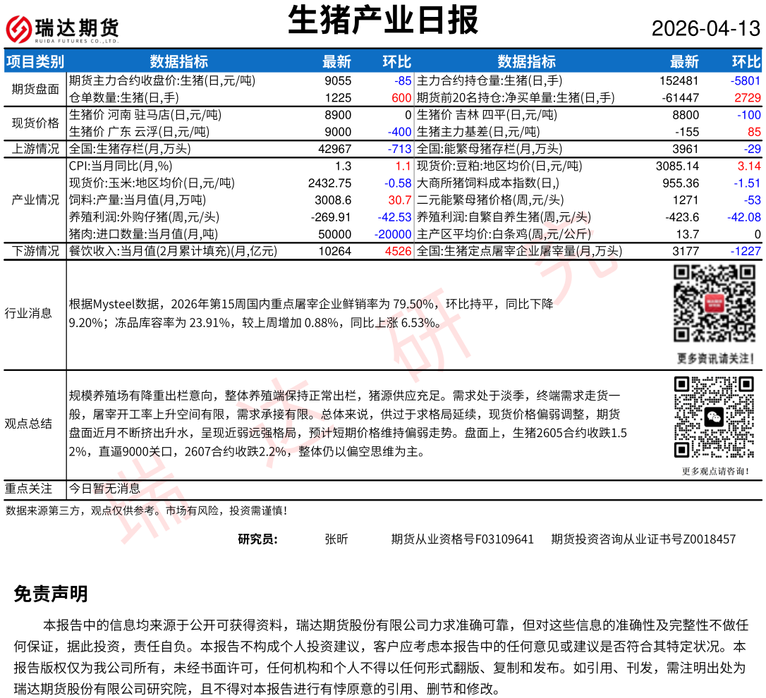 2026-04-13瑞达期货鸡蛋产业日报20260413