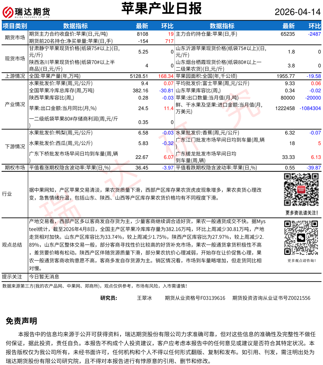 2026-04-14瑞达期货棉花(纱)产业日报20260414