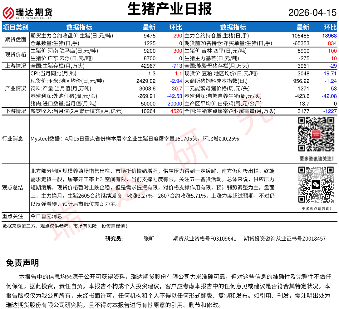 2026-04-15瑞达期货鸡蛋产业日报20260415