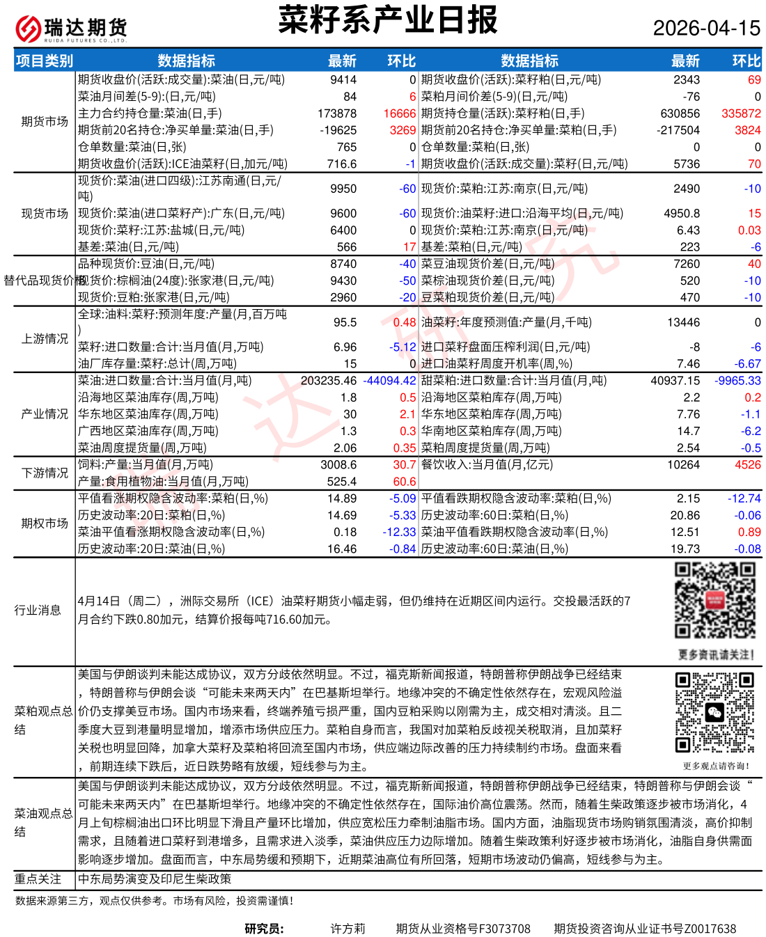 2026-04-15瑞达期货鸡蛋产业日报20260415