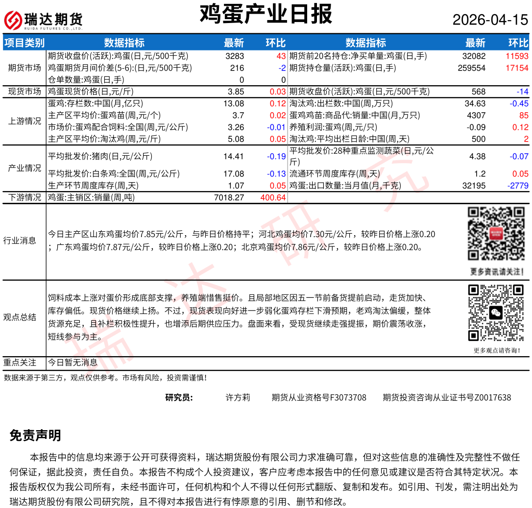 2026-04-15瑞达期货鸡蛋产业日报20260415
