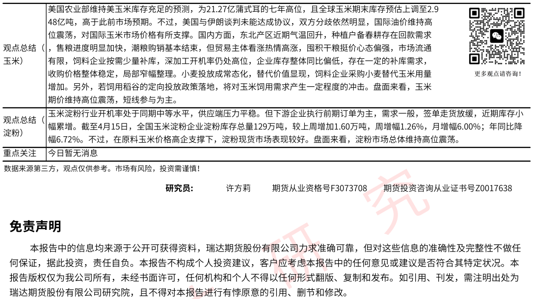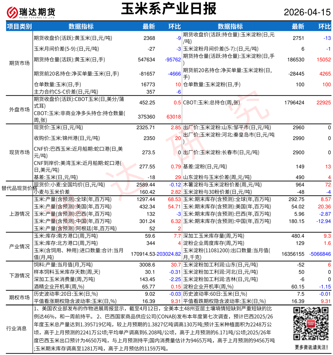2026-04-15瑞达期货玉米系产业日报20260415