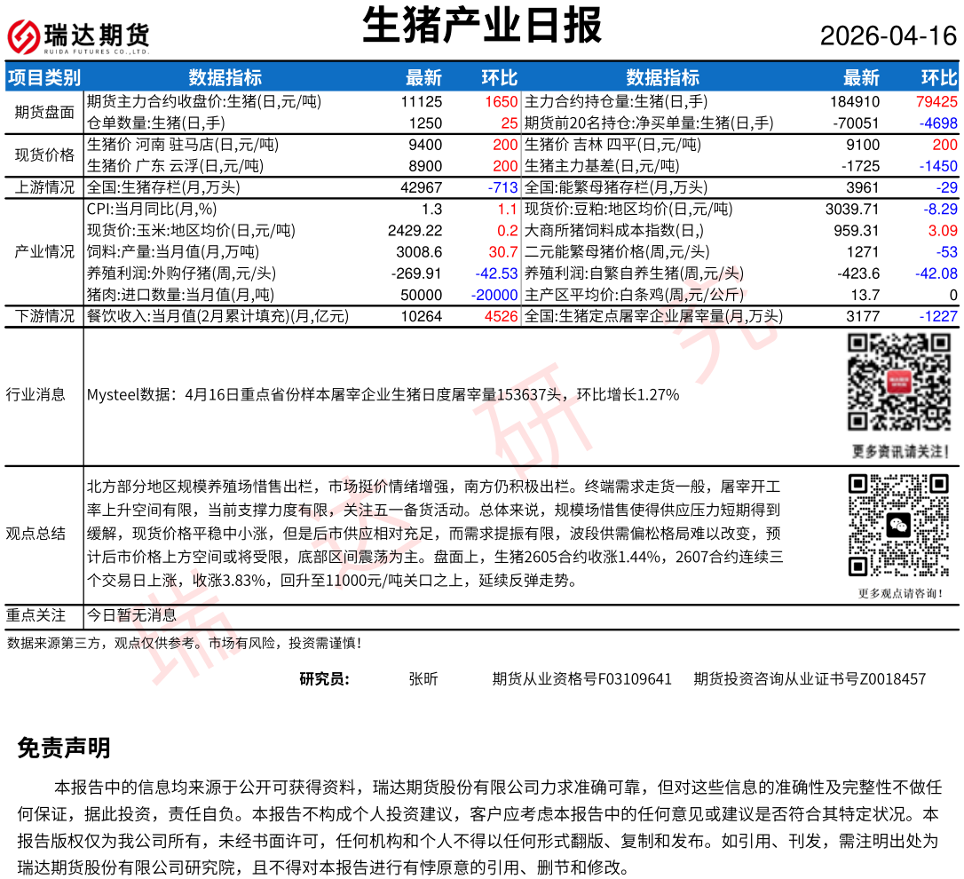 2026-04-16瑞达期货鸡蛋产业日报20260416