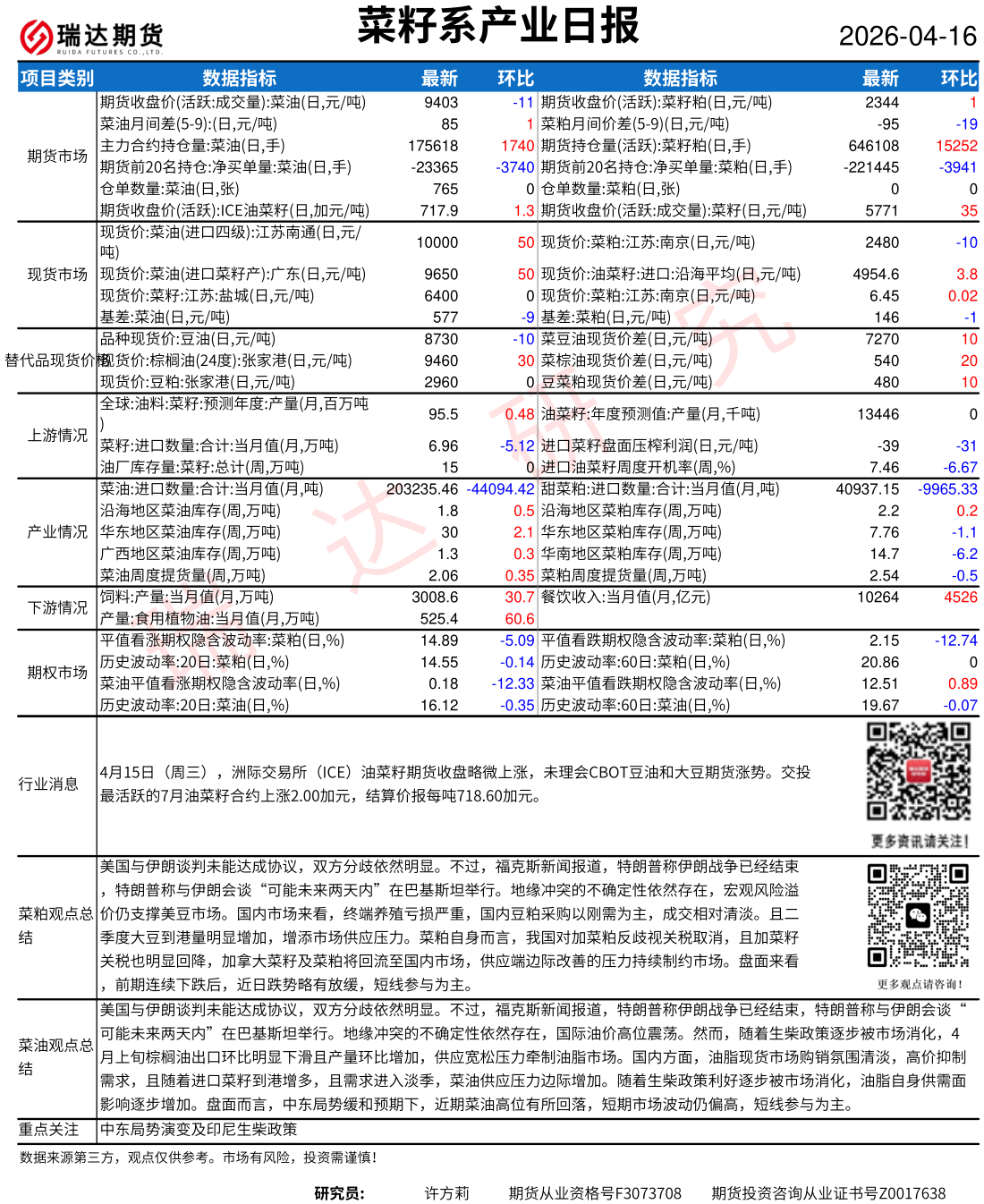2026-04-16瑞达期货鸡蛋产业日报20260416