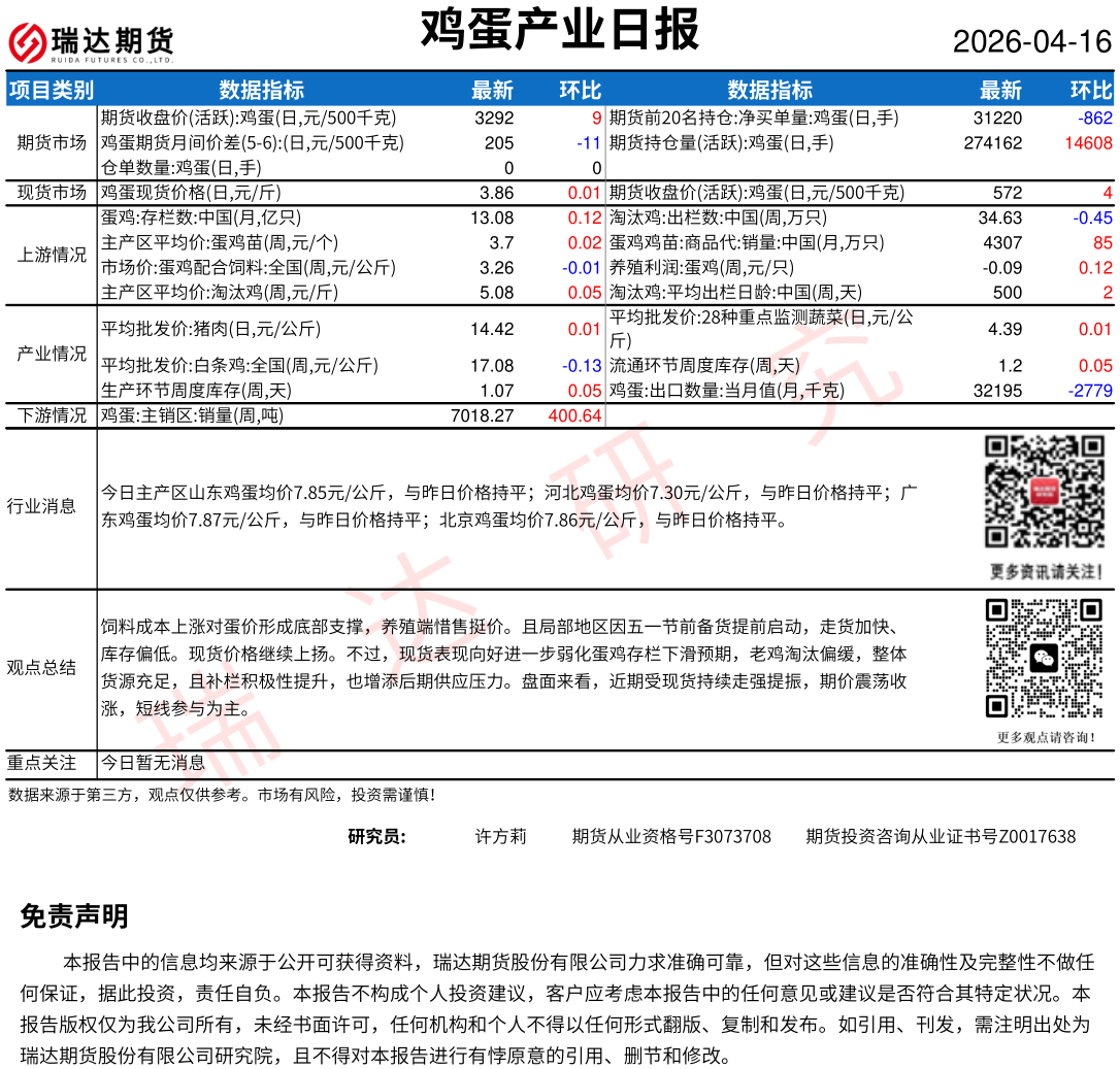 2026-04-16瑞达期货鸡蛋产业日报20260416