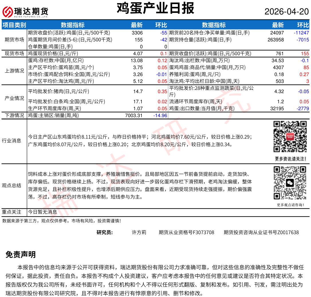 2026-04-20瑞达期货鸡蛋产业日报20260420