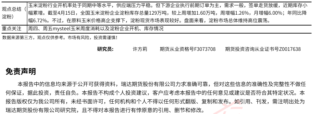 2026-04-20瑞达期货玉米系产业日报20260420