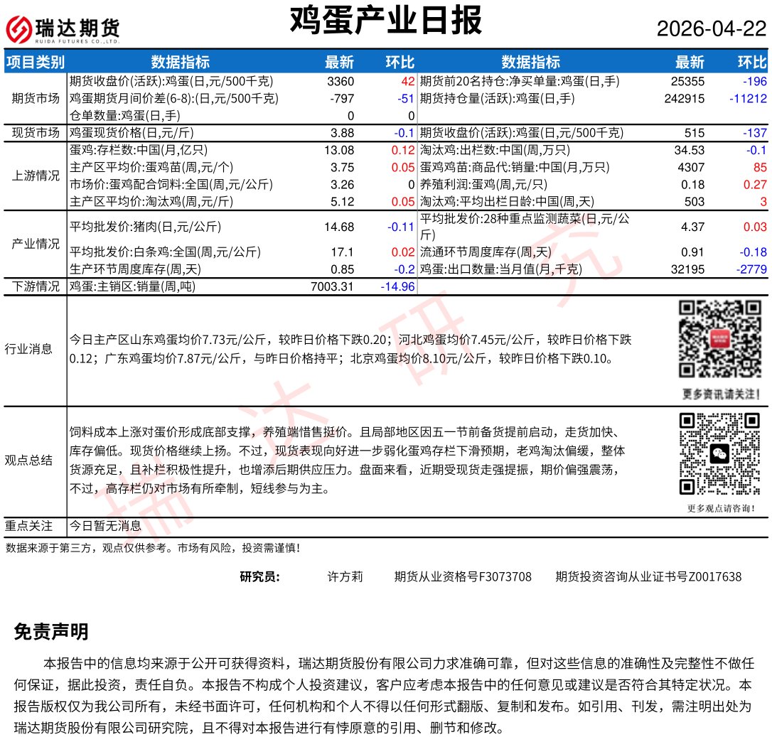 2026-04-22瑞达期货鸡蛋产业日报20260422