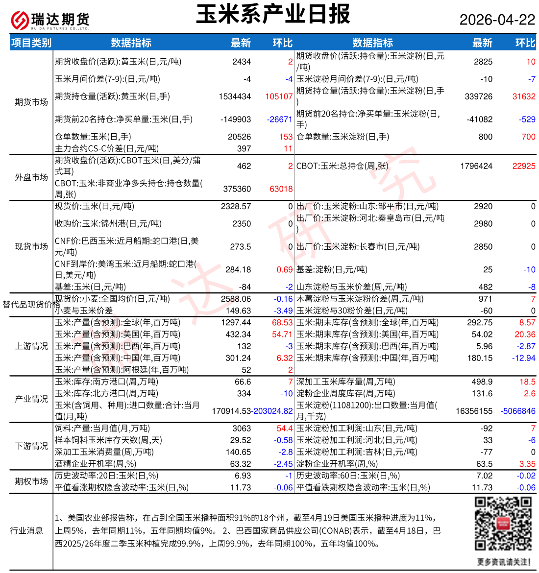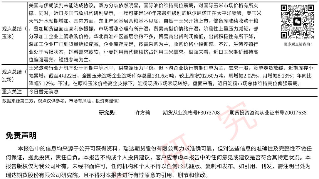 2026-04-22瑞达期货玉米系产业日报20260422