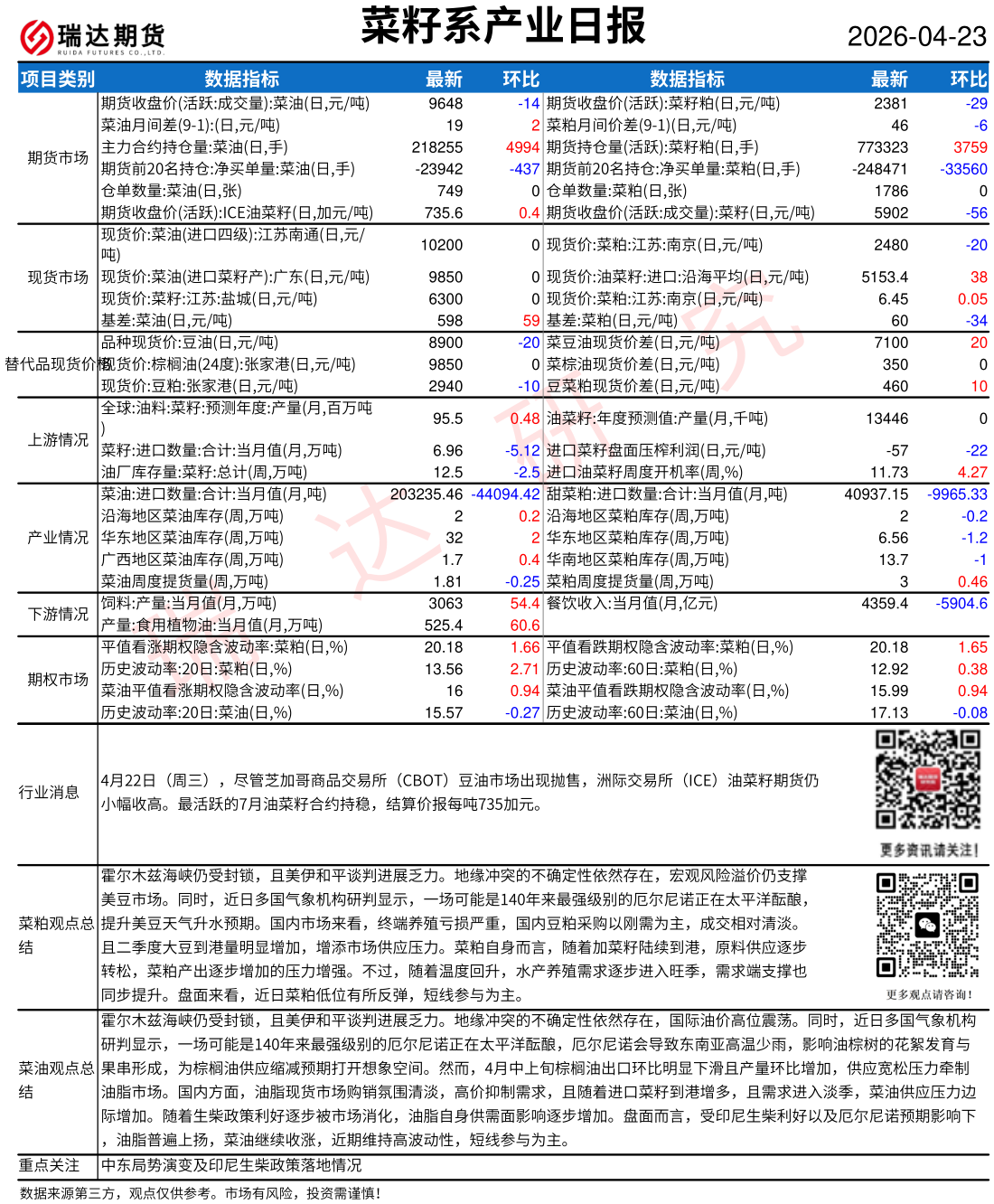 2026-04-23瑞达期货鸡蛋产业日报20260423