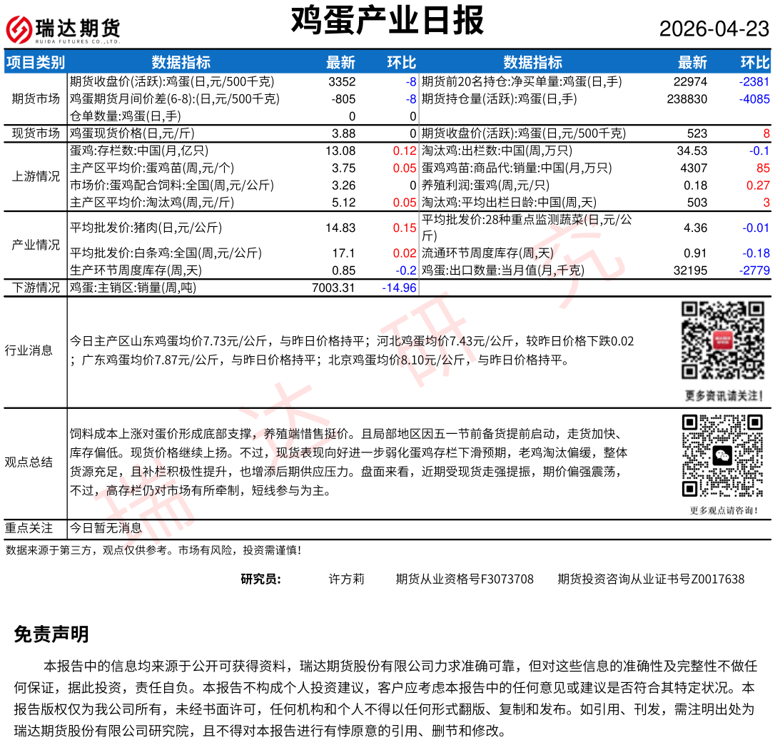2026-04-23瑞达期货鸡蛋产业日报20260423