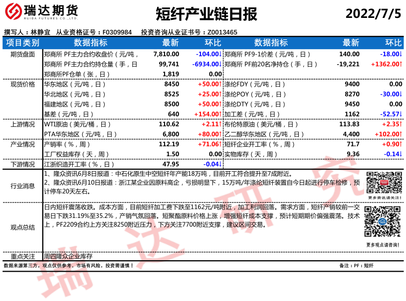 瑞达期货短纤产业日报20220705