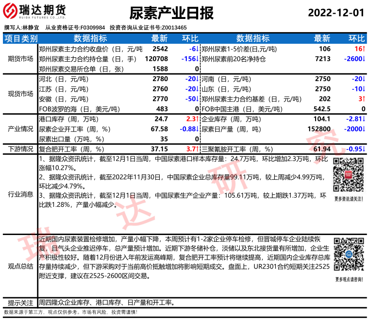 2025-12-25瑞达期货尿素产业日报20251225
