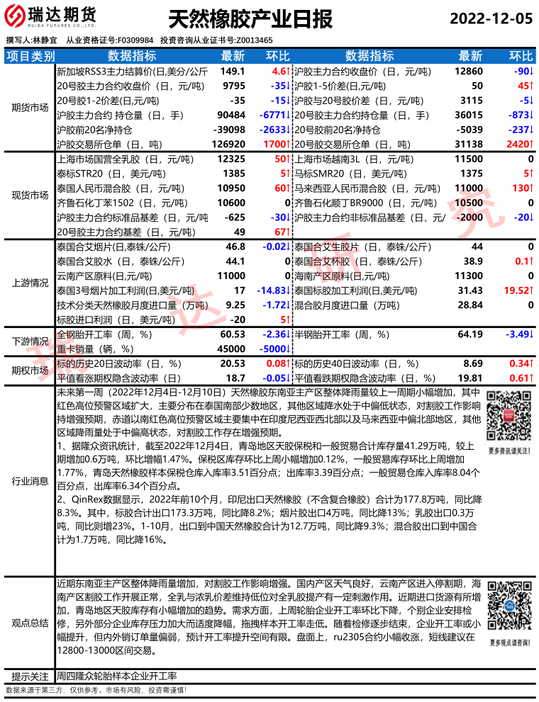 2025-12-25瑞达期货天然橡胶产业日报20251225