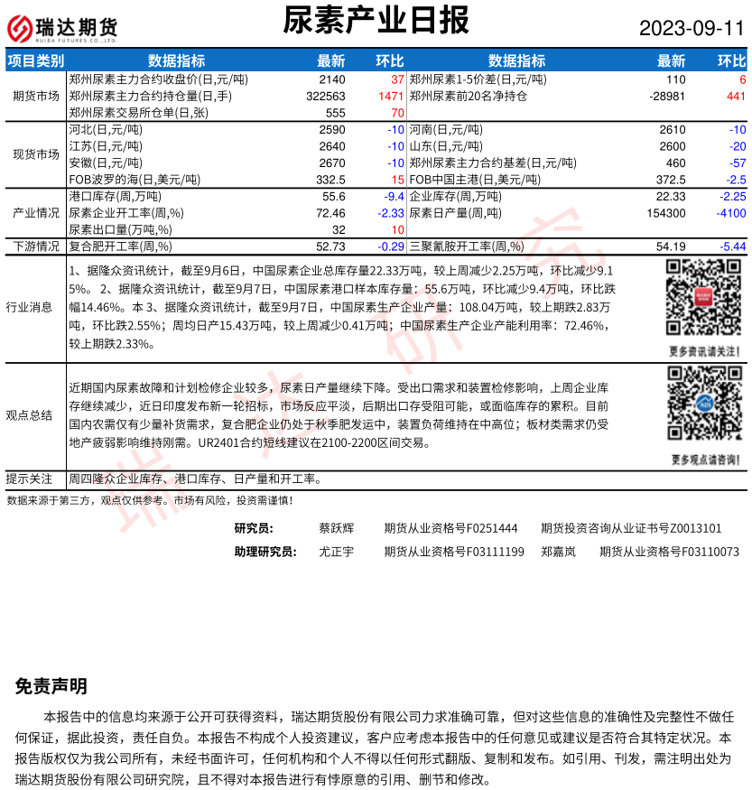 2025-12-22瑞达期货尿素产业日报20251222