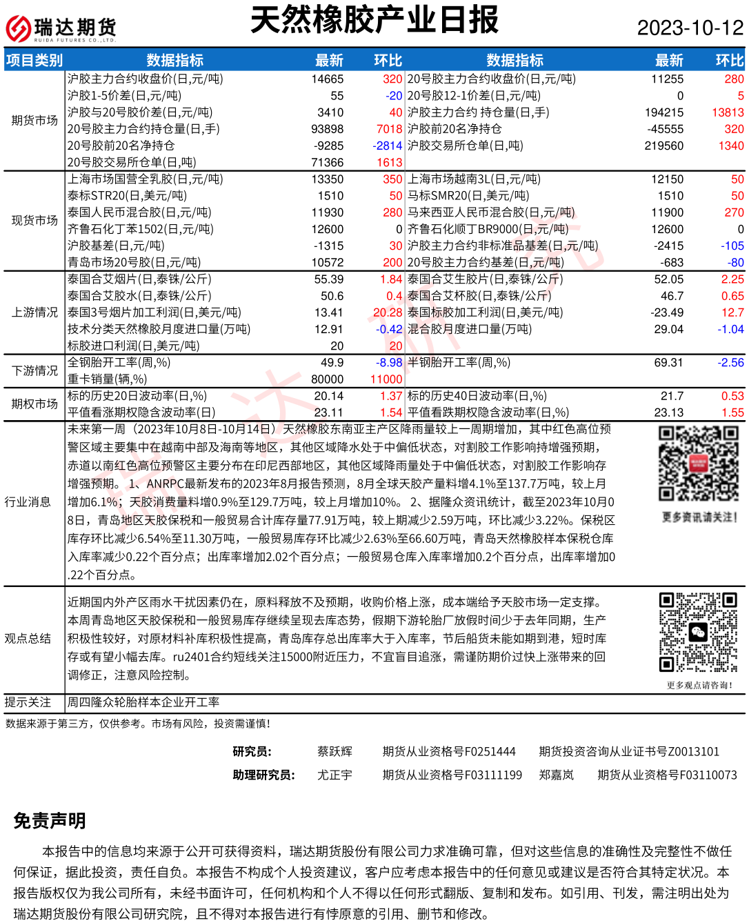 2025-12-23瑞达期货天然橡胶产业日报20251223
