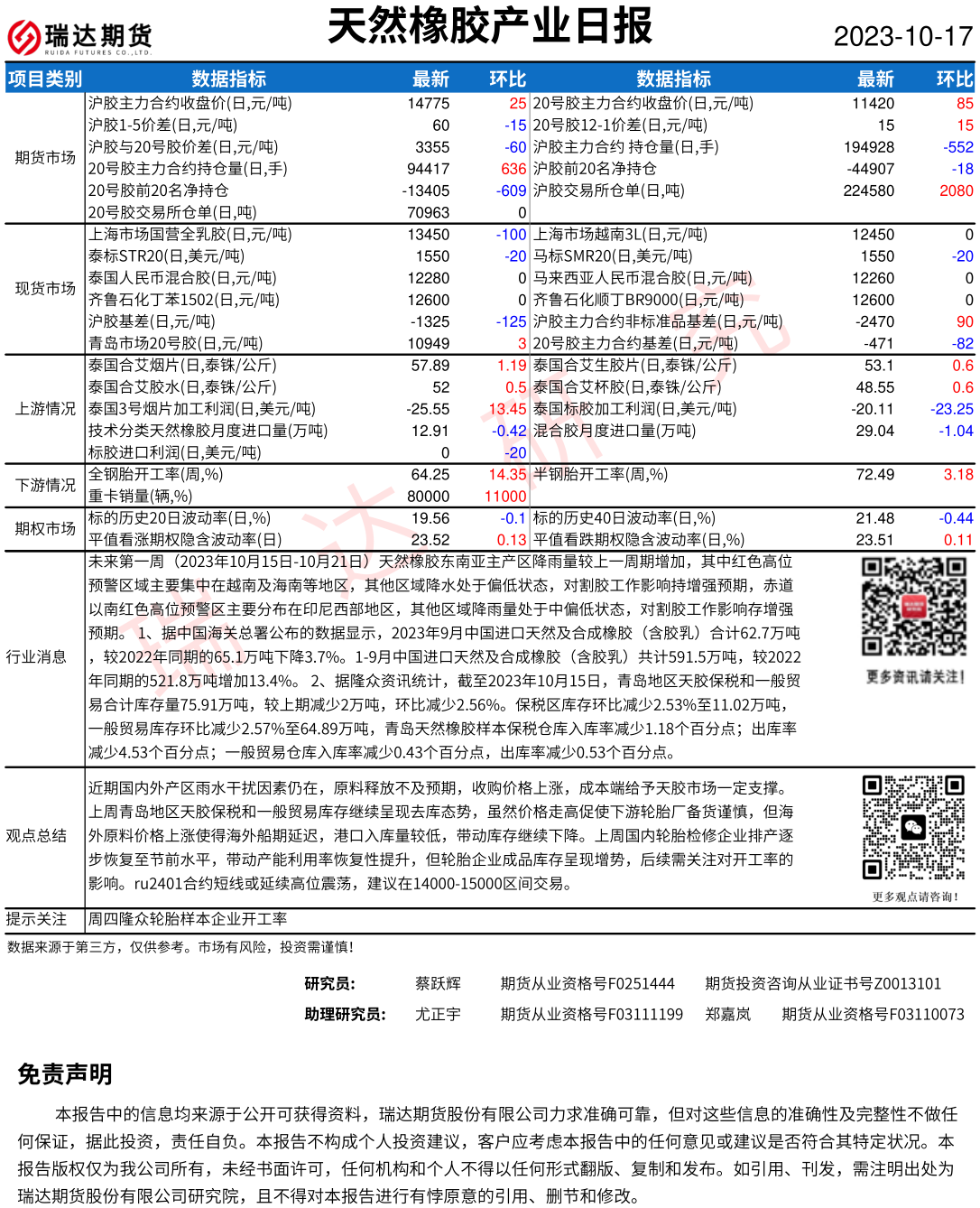 2025-12-23瑞达期货天然橡胶产业日报20251223