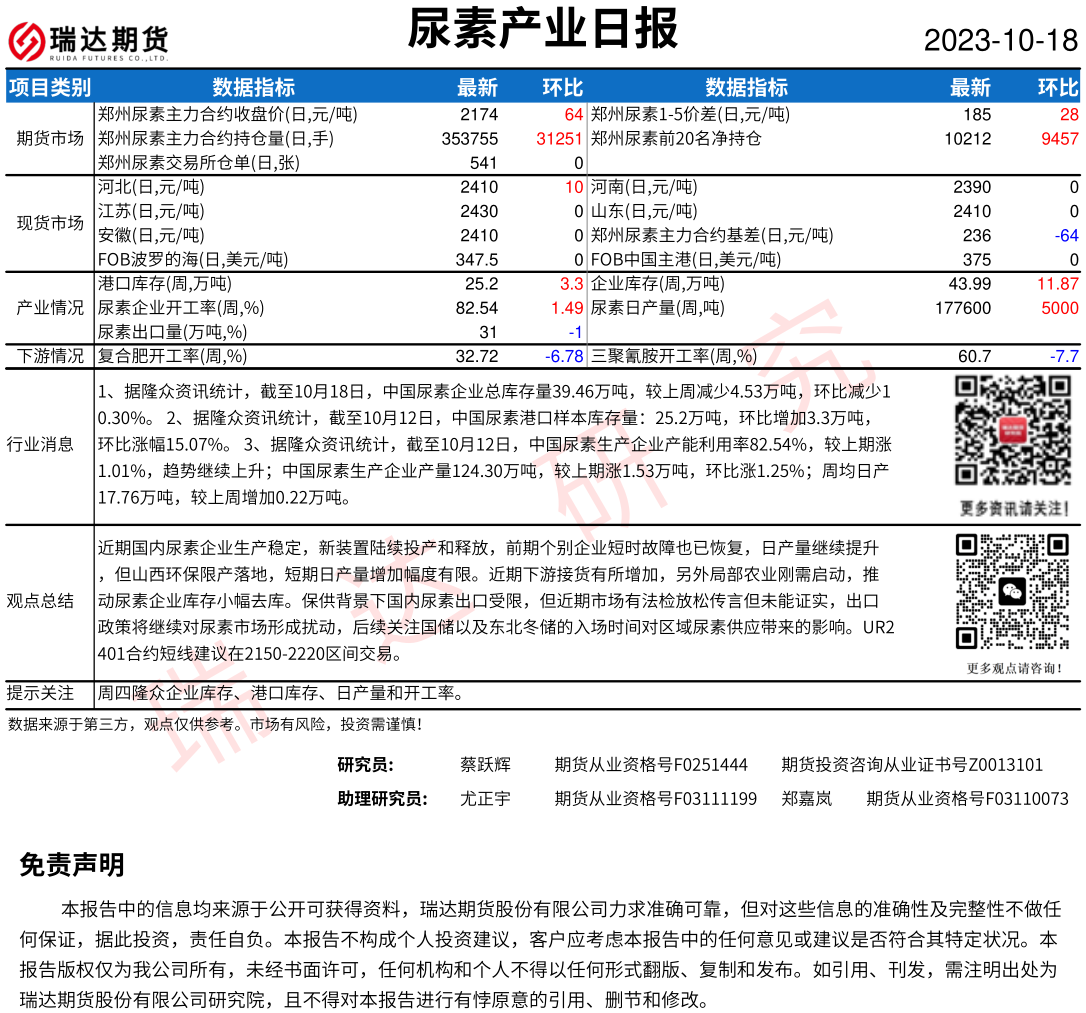 2025-12-23瑞达期货尿素产业日报20251223