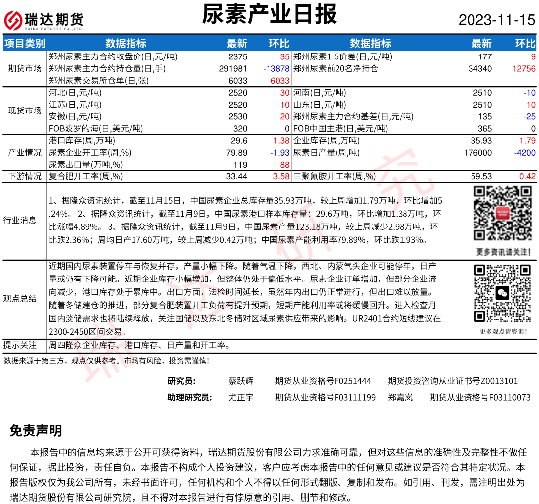 2025-12-24瑞达期货尿素产业日报20251224