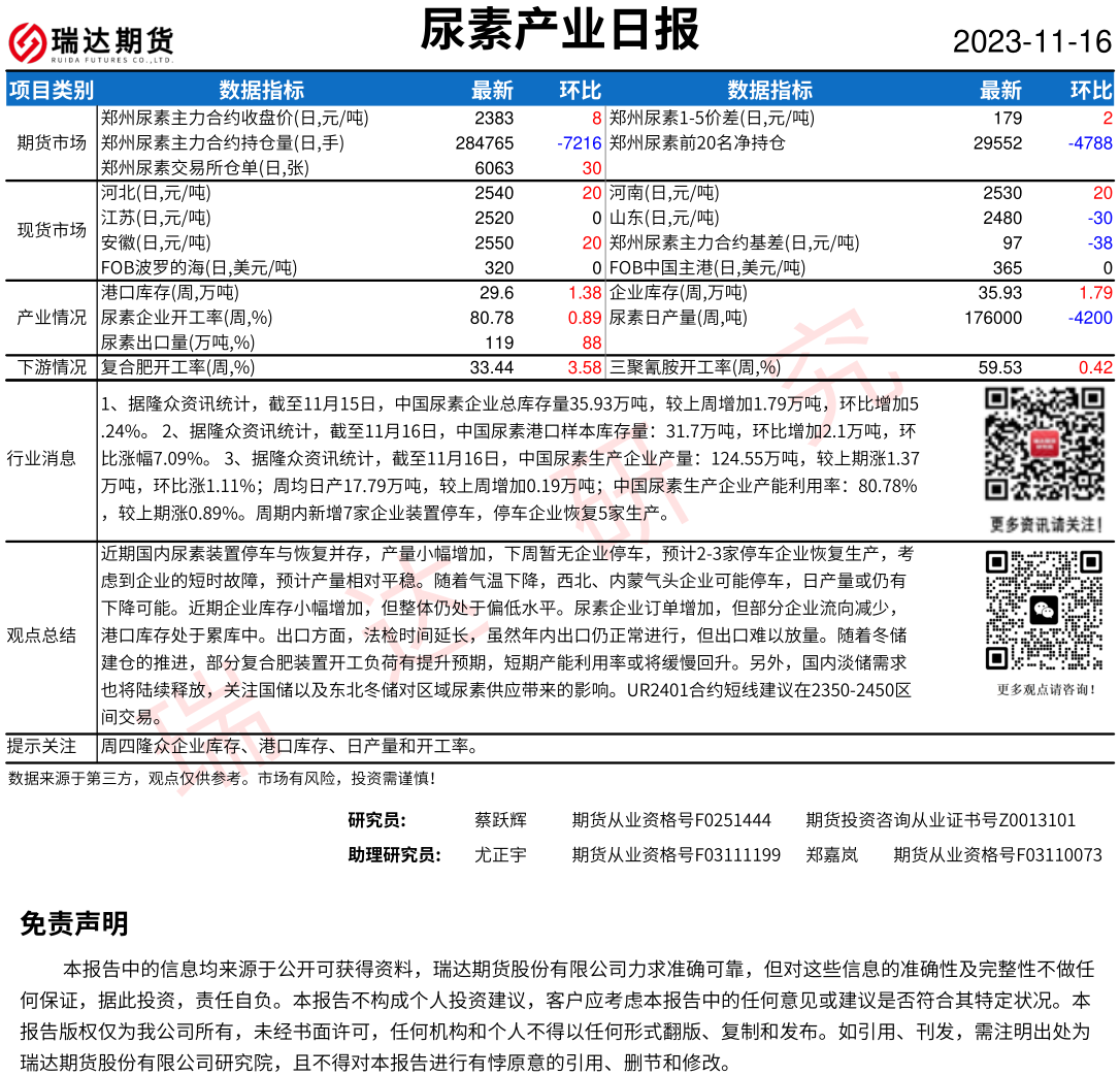 2025-12-24瑞达期货尿素产业日报20251224