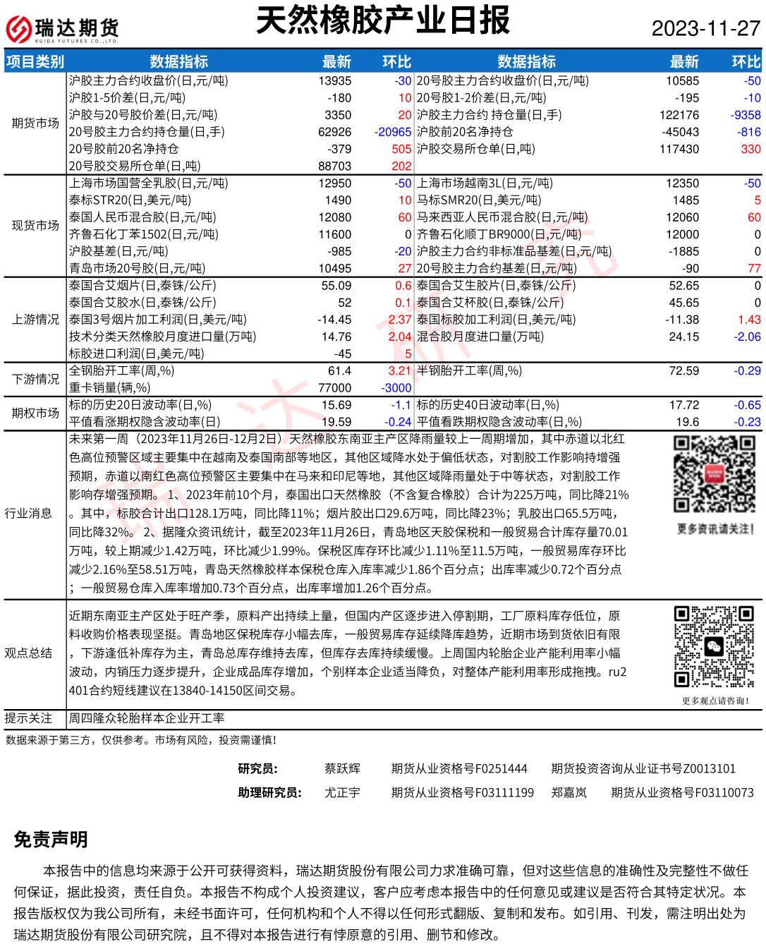 2025-12-24瑞达期货天然橡胶产业日报20251224