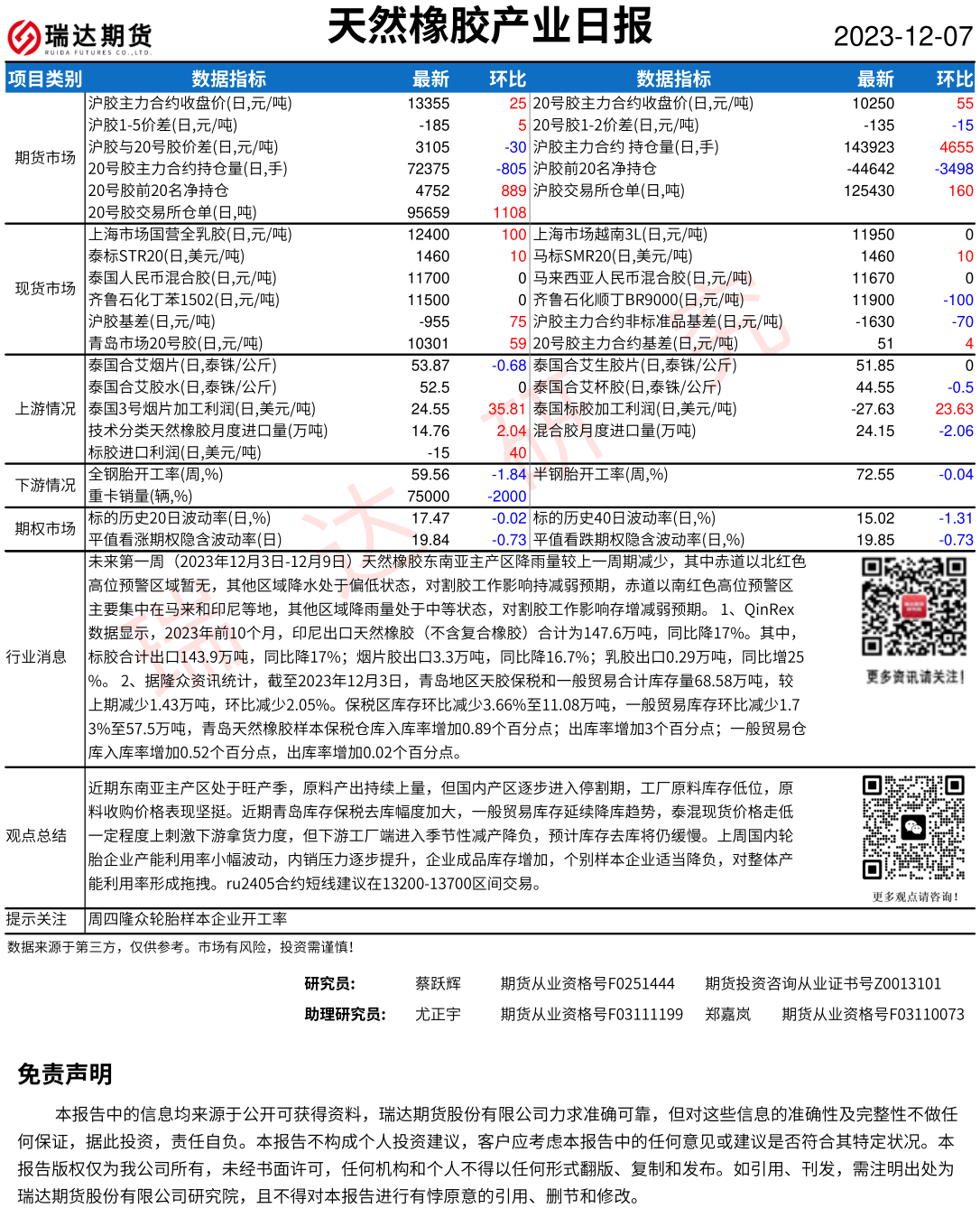 2025-12-24瑞达期货天然橡胶产业日报20251224