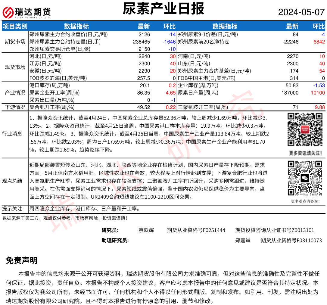 2025-12-24瑞达期货尿素产业日报20251224