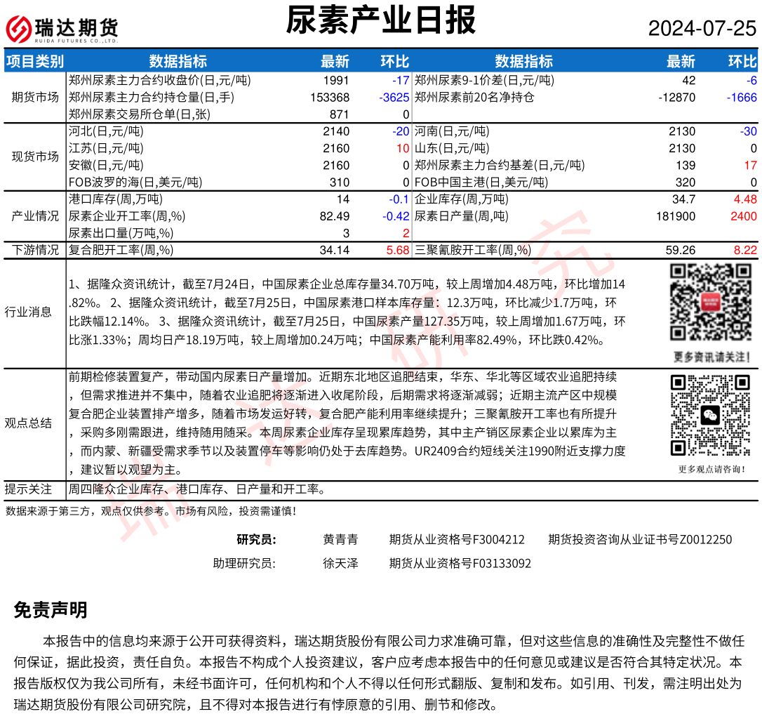 2025-12-23瑞达期货尿素产业日报20251223