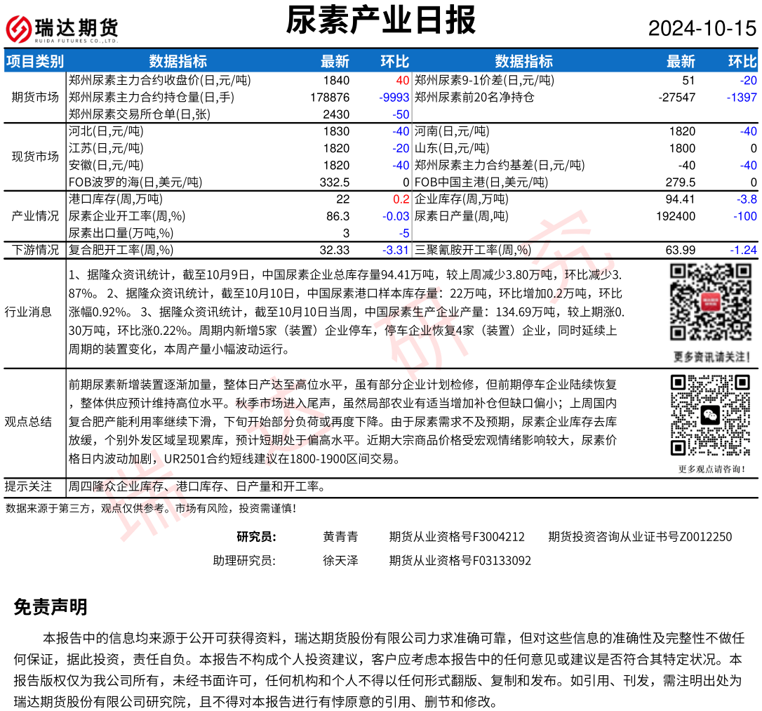 2025-12-23瑞达期货尿素产业日报20251223