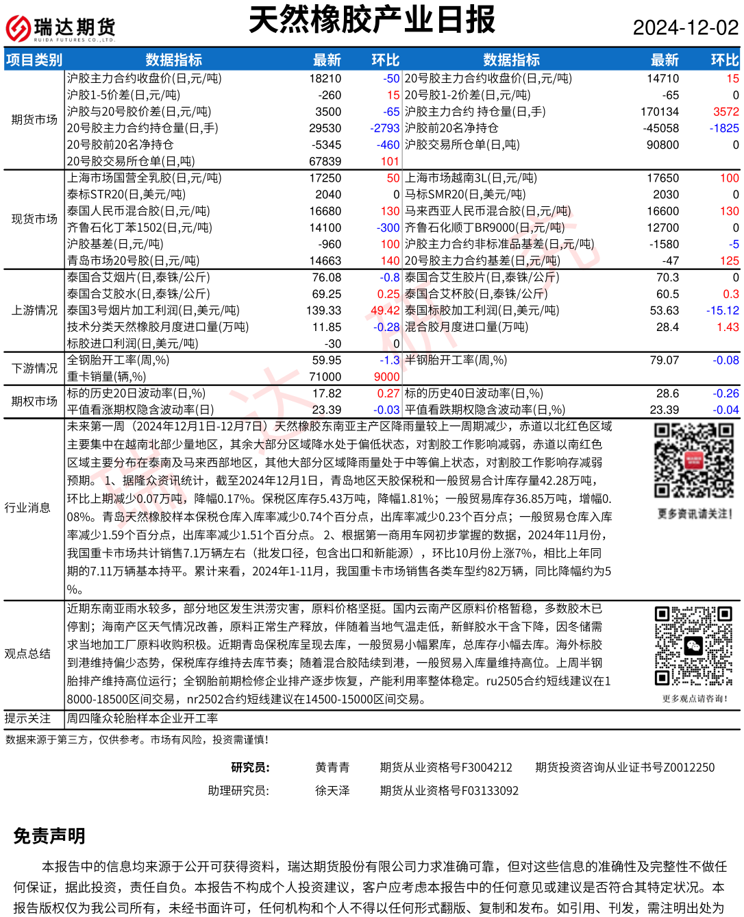 2025-12-18瑞达期货天然橡胶产业日报20251218