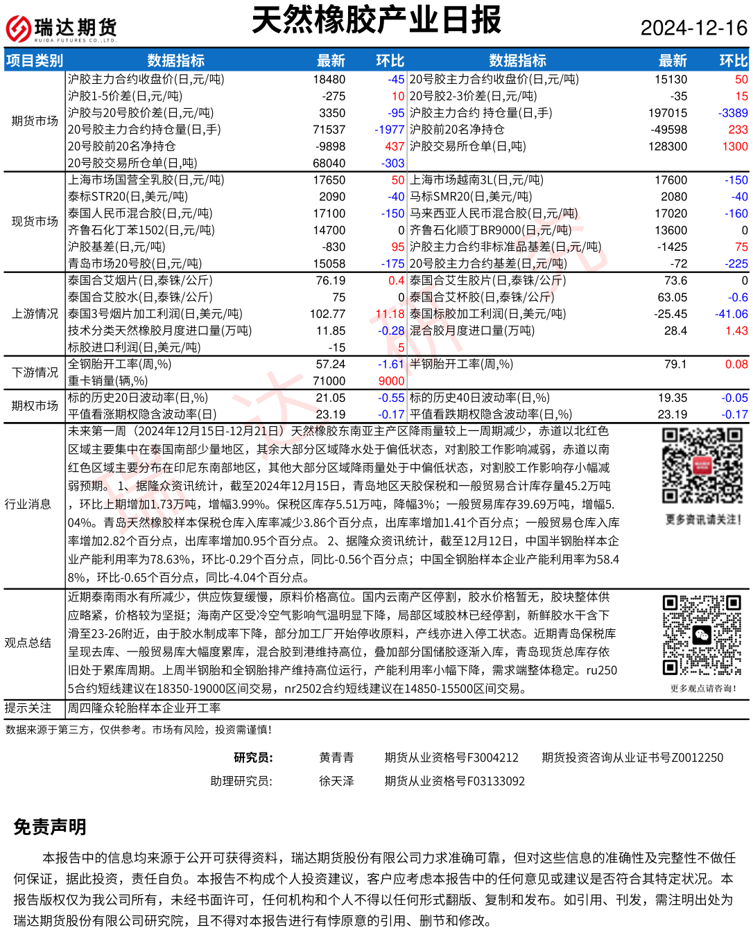 2025-12-22瑞达期货天然橡胶产业日报20251222