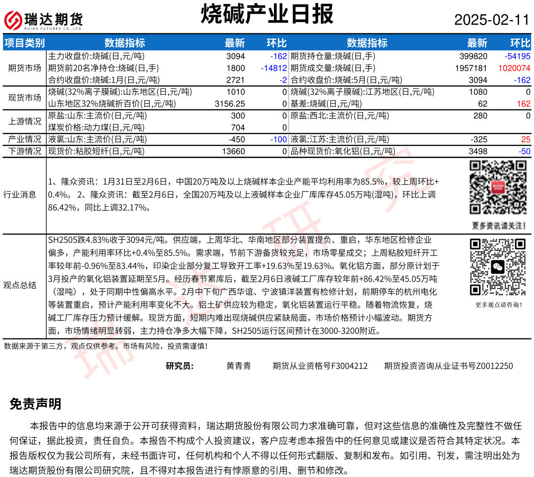 2026-02-12瑞达期货烧碱产业日报20260212