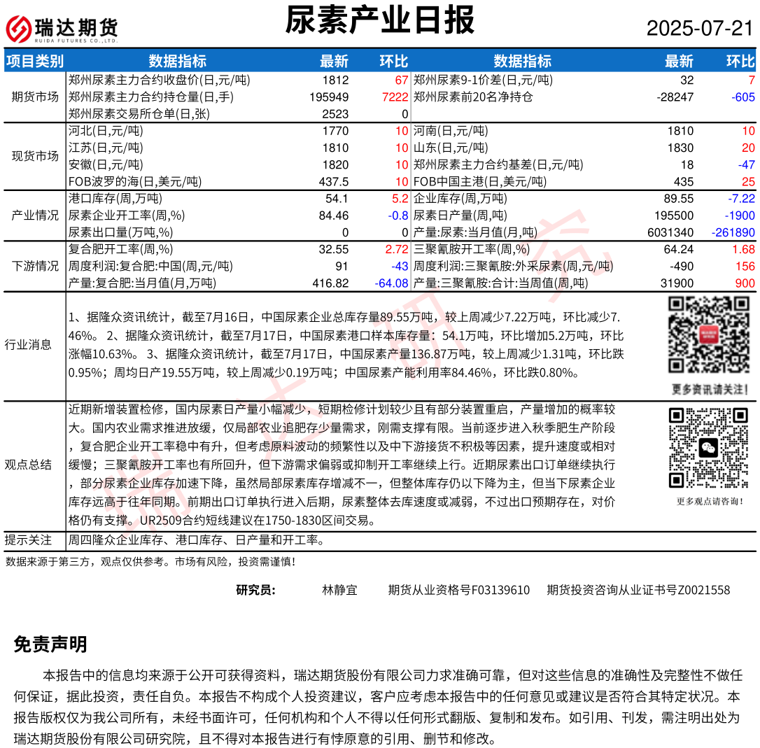 2025-12-16瑞达期货尿素产业日报20251216