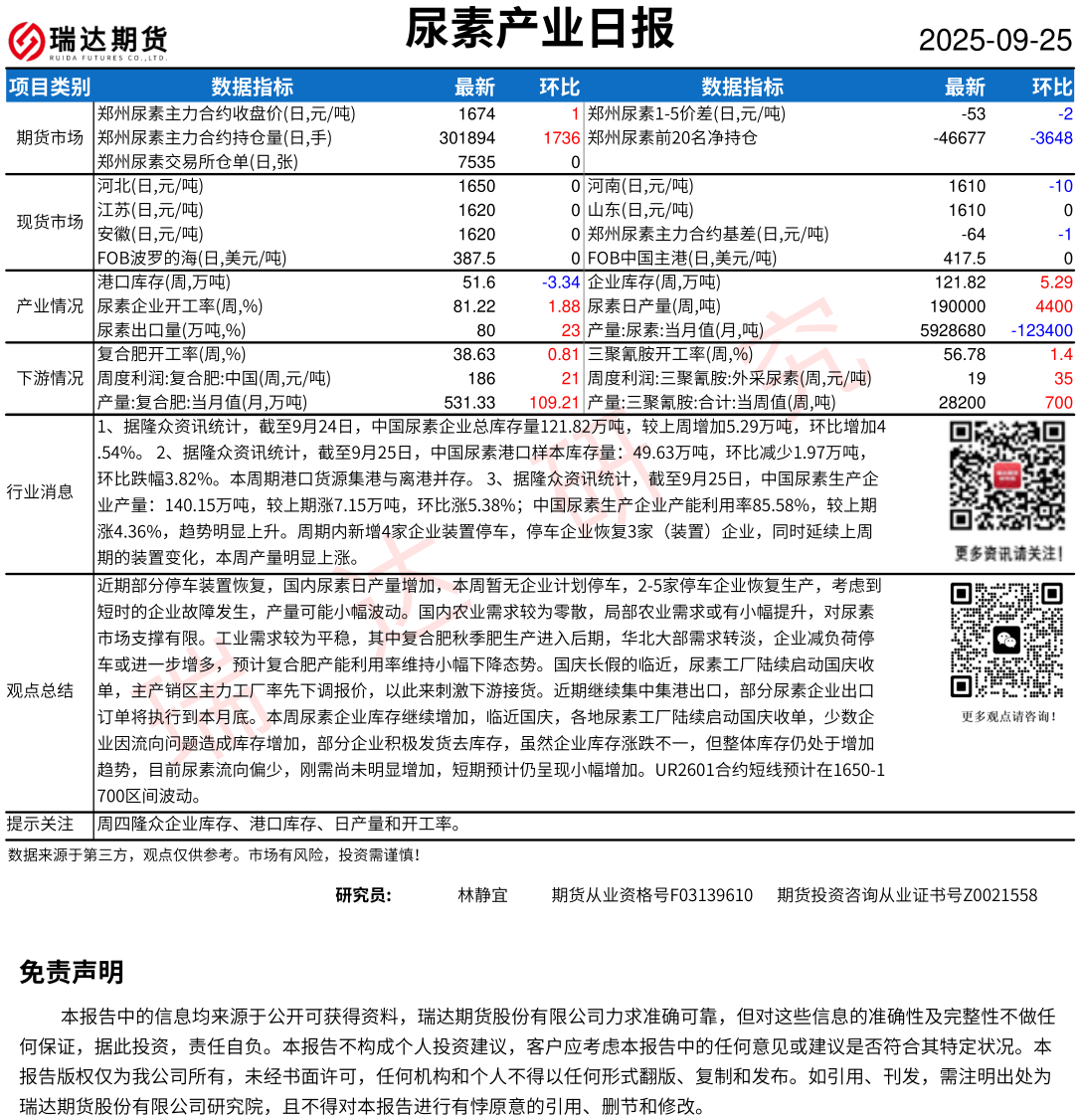 2025-12-15瑞达期货尿素产业日报20251215