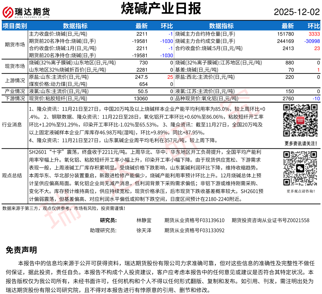 2025-12-05瑞达期货烧碱产业日报20251204