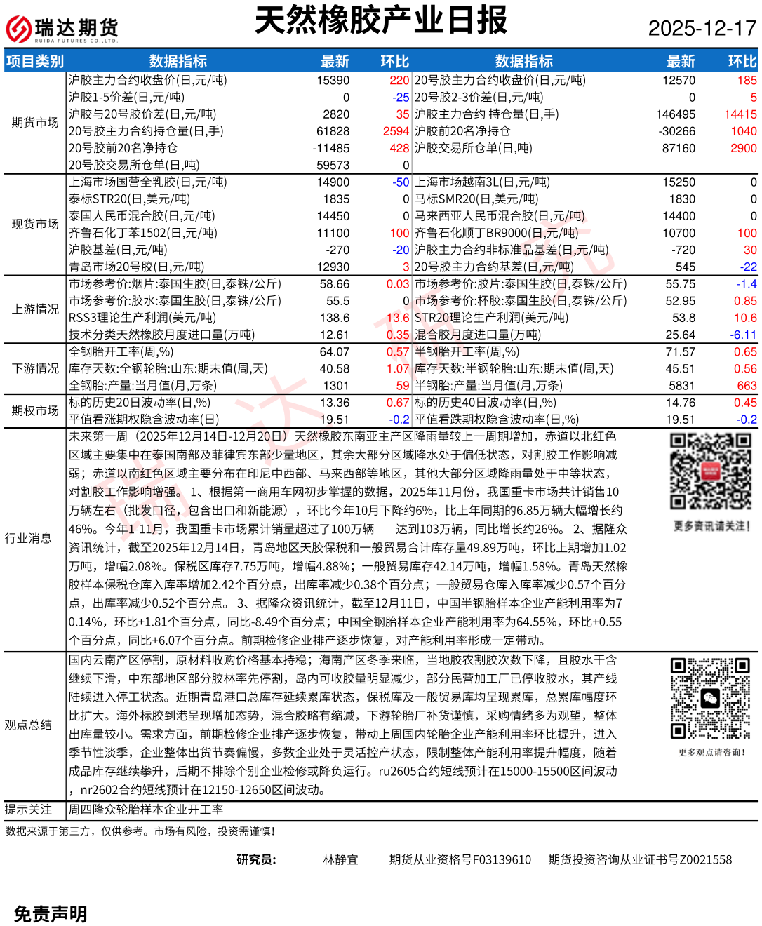 2025-12-17瑞达期货天然橡胶产业日报20251217