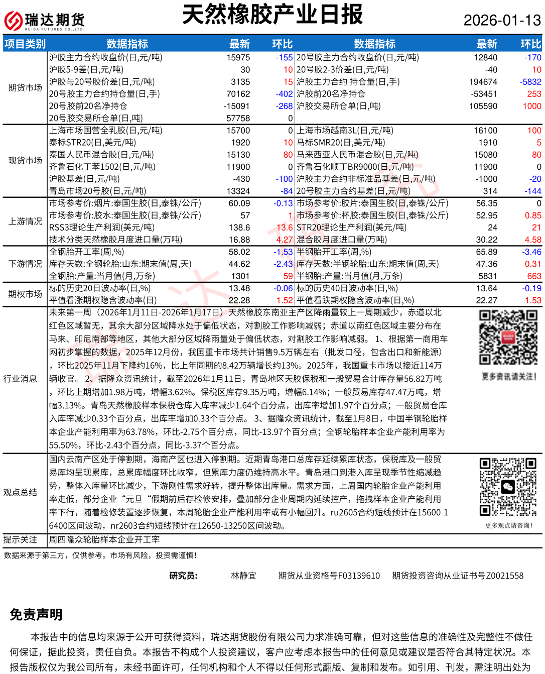 2026-01-13瑞达期货天然橡胶产业日报20260113