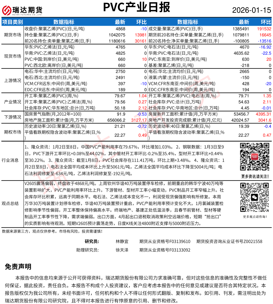 2026-01-26瑞达期货塑料产业日报20260126