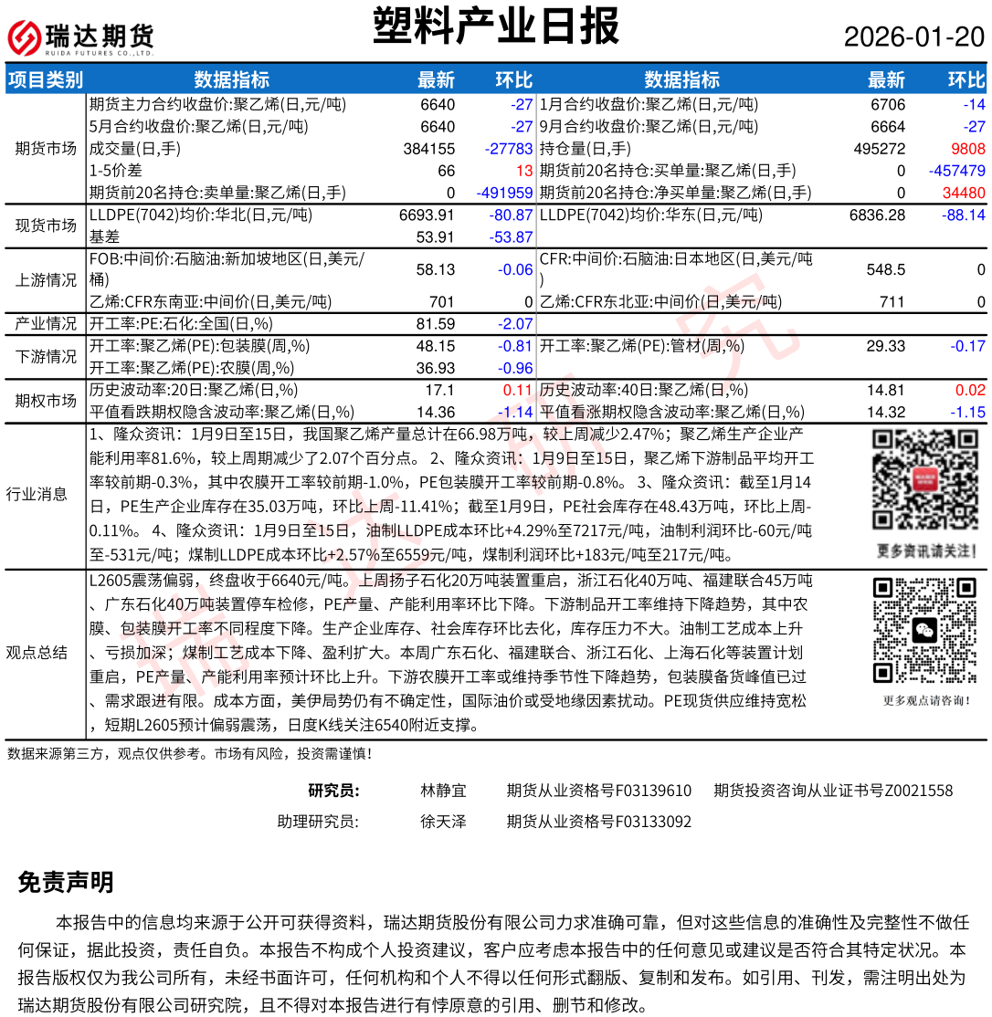 2026-02-11瑞达期货塑料产业日报20260211