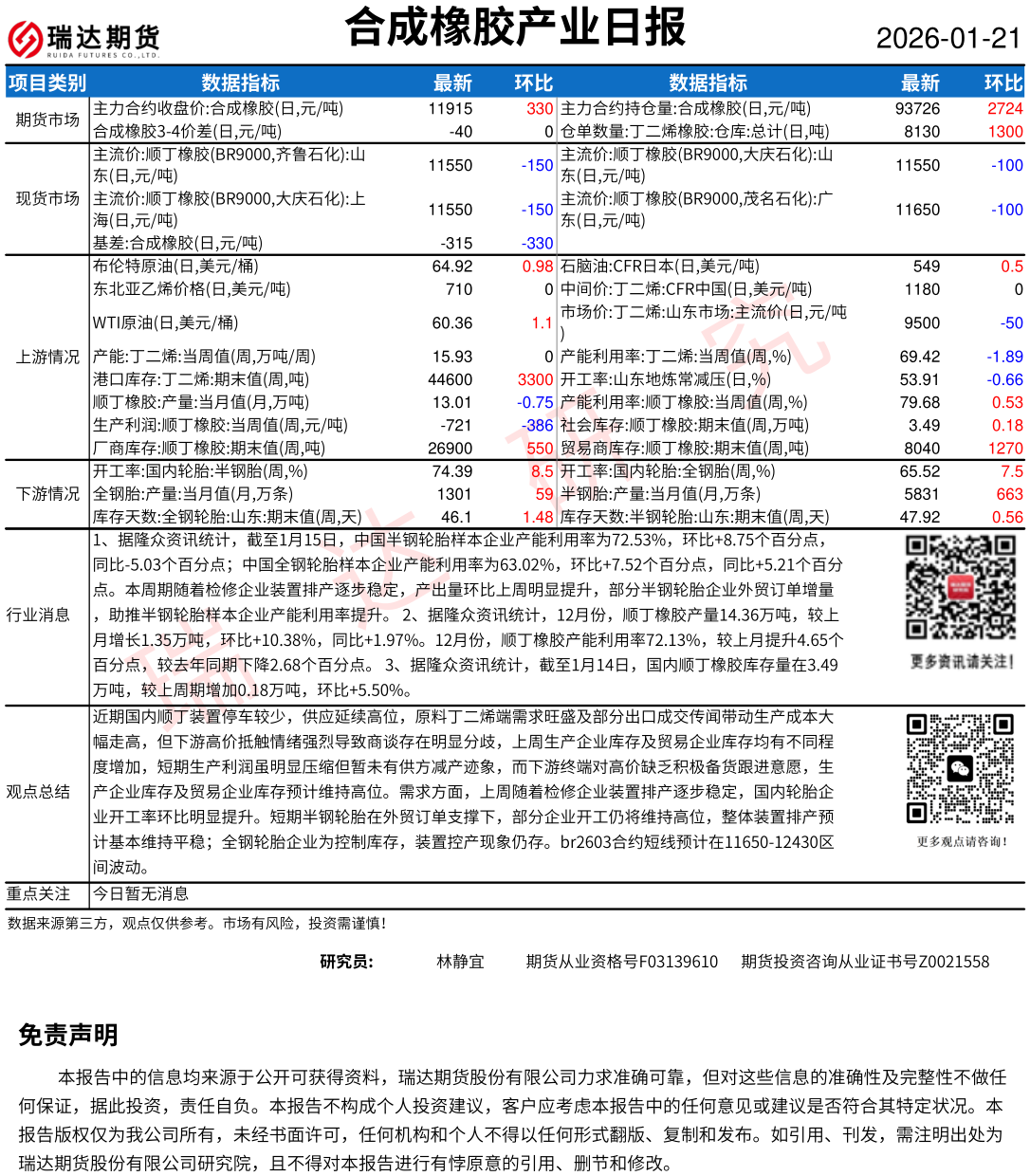2026-01-26瑞达期货天然橡胶产业日报20260126