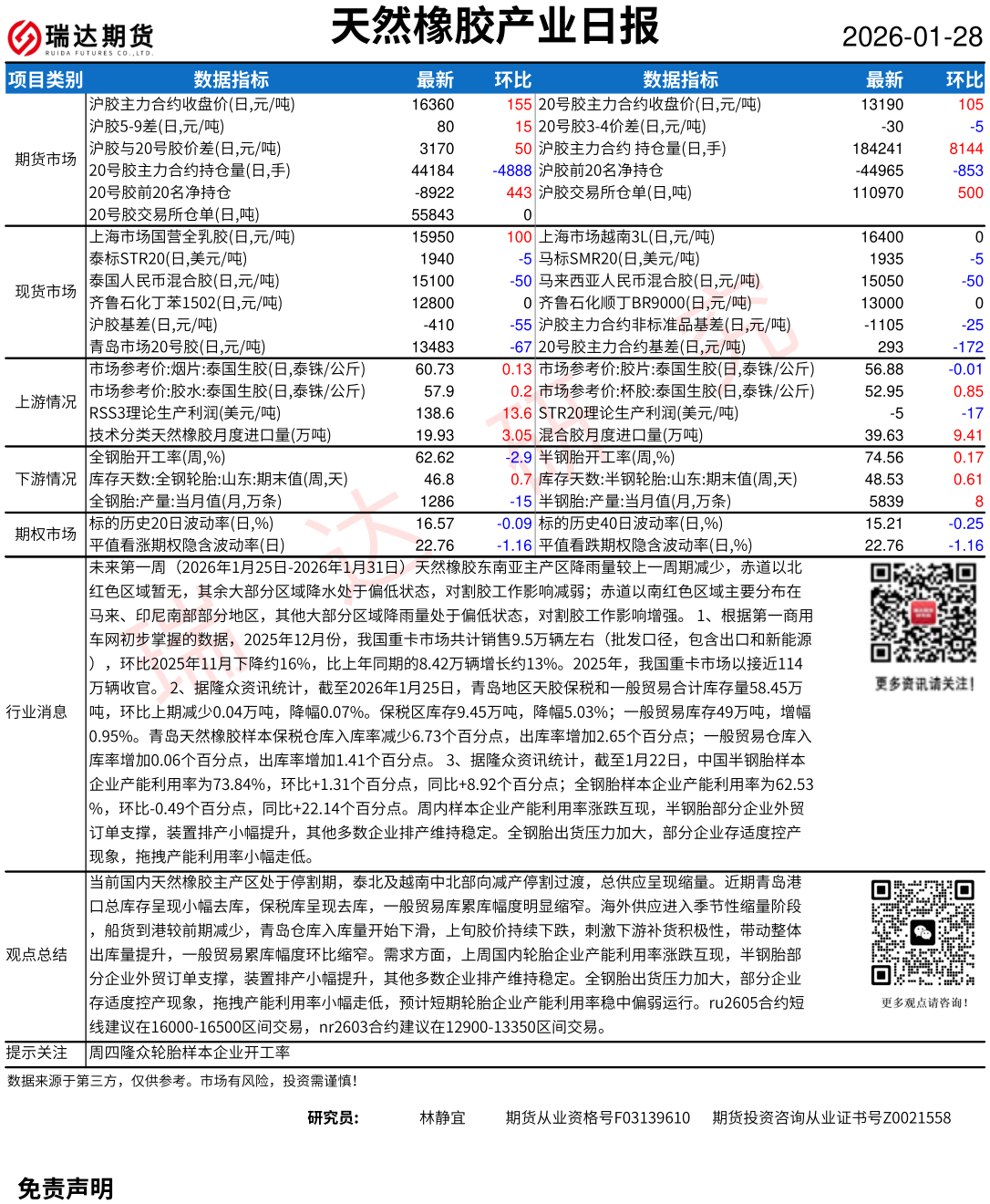 2026-01-28瑞达期货天然橡胶产业日报20260128