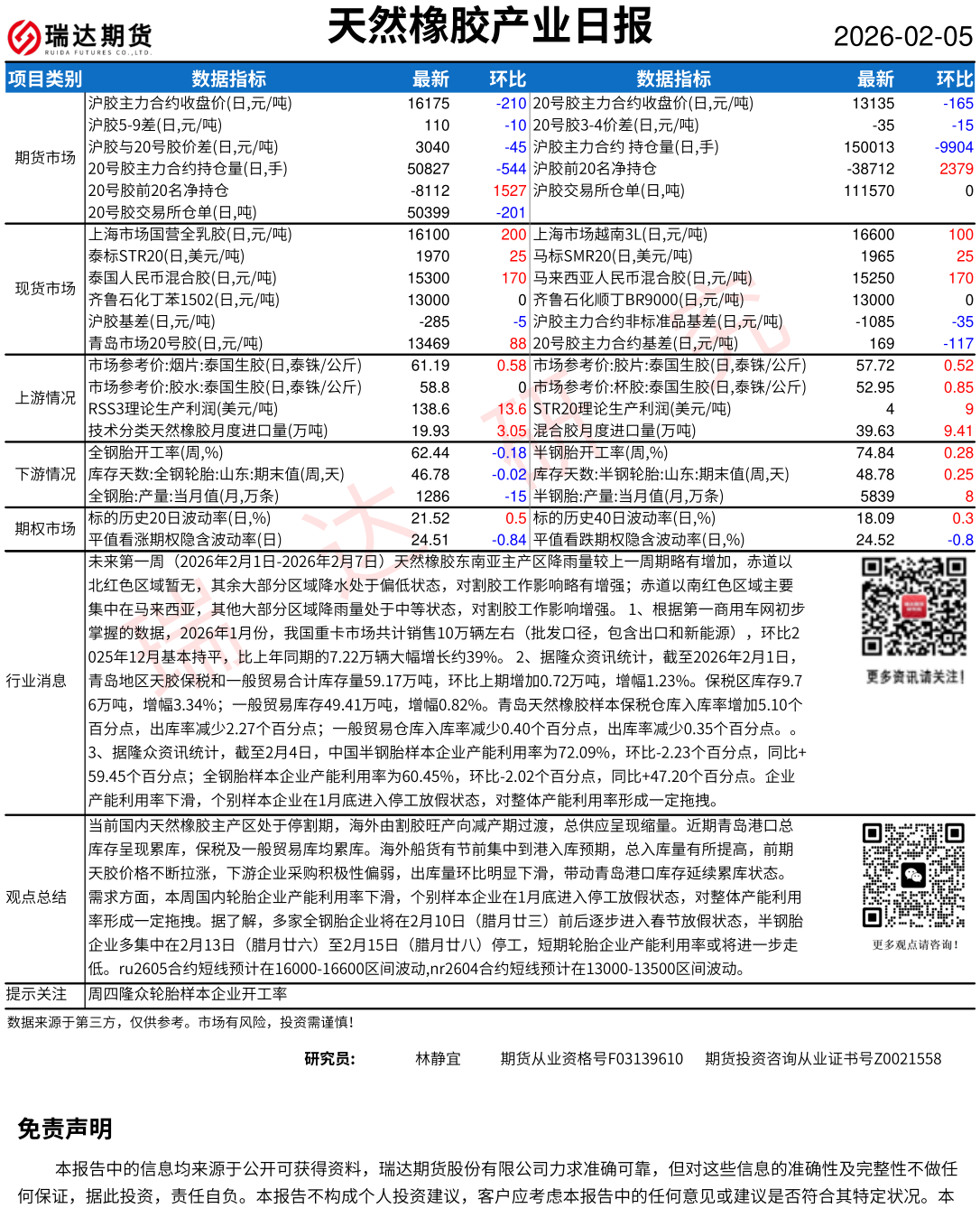 2026-02-05瑞达期货天然橡胶产业日报20260205