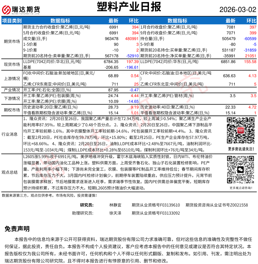 2026-03-05瑞达期货塑料产业日报20260304