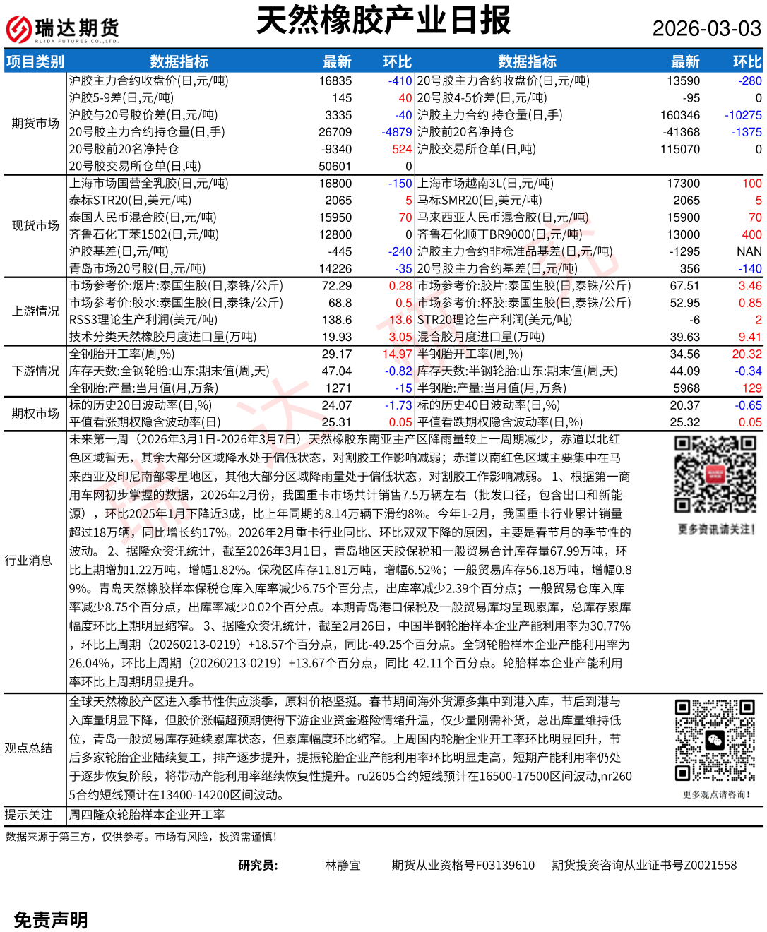 2026-03-03瑞达期货天然橡胶产业日报20260303