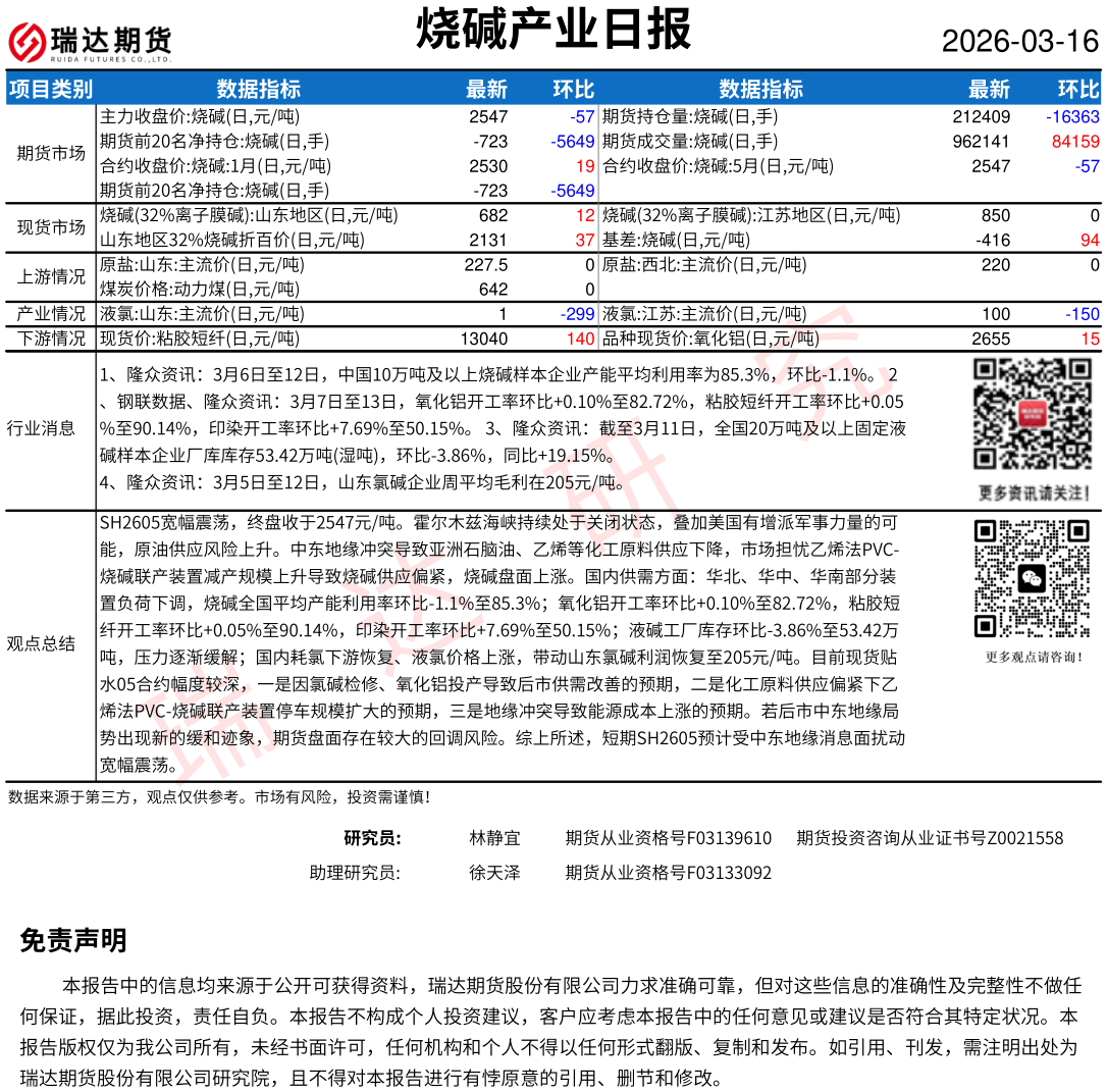 2026-03-17瑞达期货烧碱产业日报20260316