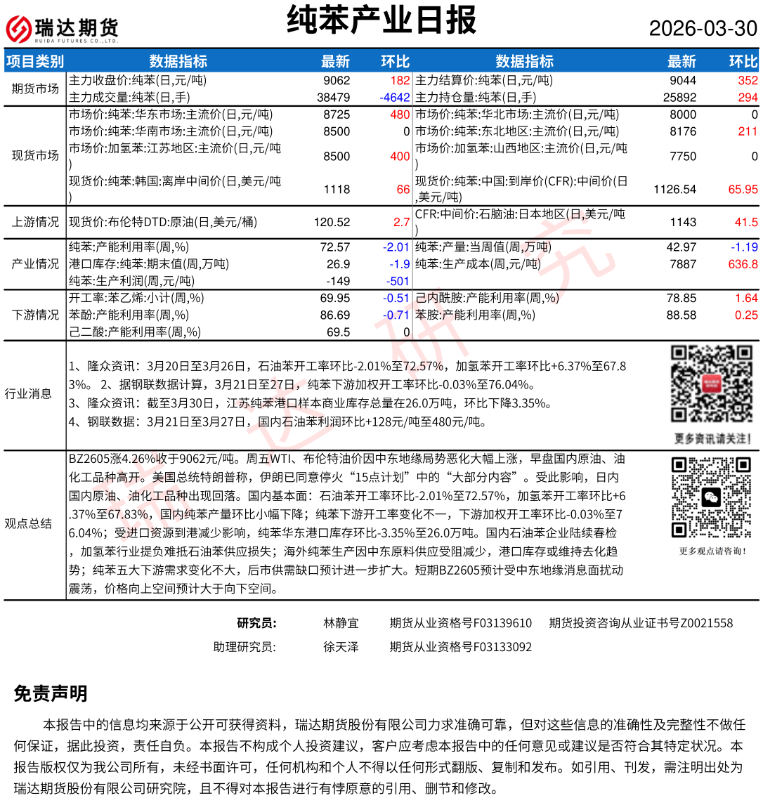 2026-03-31瑞达期货天然橡胶产业日报20260331